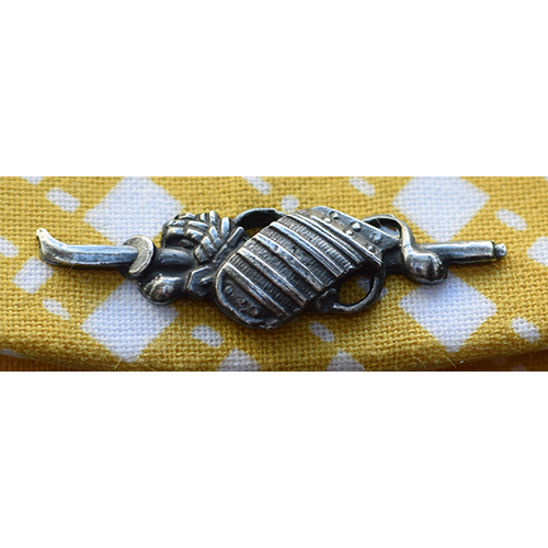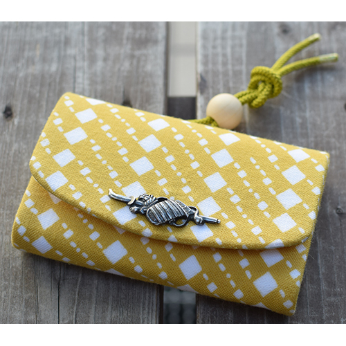 煙草入れ 釘ぬきくずし柄 からし色 前金具・袖と薙刀
